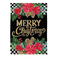 Floral Checkered Merry Christmas Suede Garden Flag