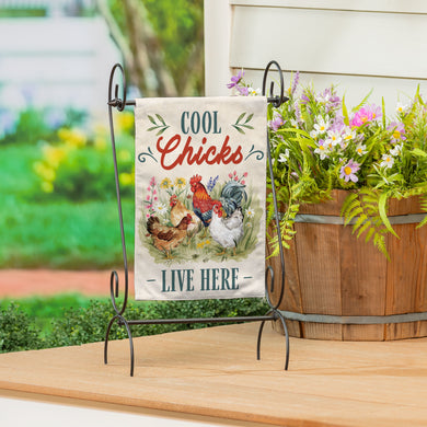 Petal & Plow Cool Chicks Burlap Garden Flag