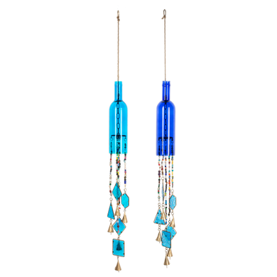 Blue Bottle with Colorful Beads & Stained Glass Wind Chime
