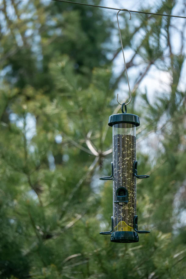 The S-hook can be used with a Squirrel Buster/Squirrel Solution bird feeder to provide the recommended 18-inch clearance from above.
