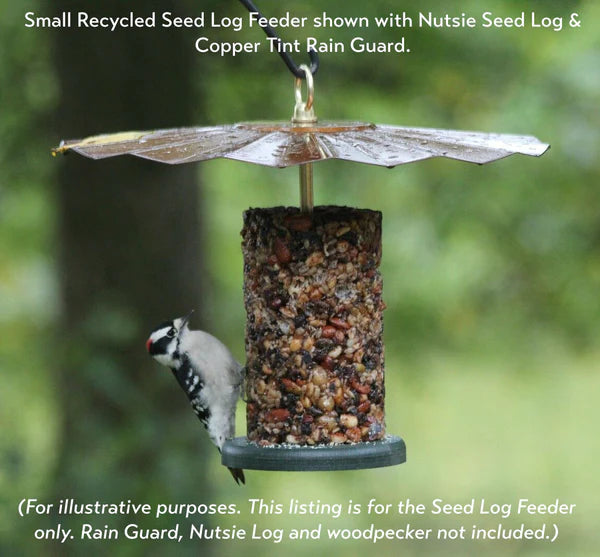 Built to hold one seed log. Our rain guards (sold separately) fit this feeder perfectly and are available in five colors.