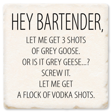 Hey Bartender Flock Of Vodka Shots Ceramic Coaster