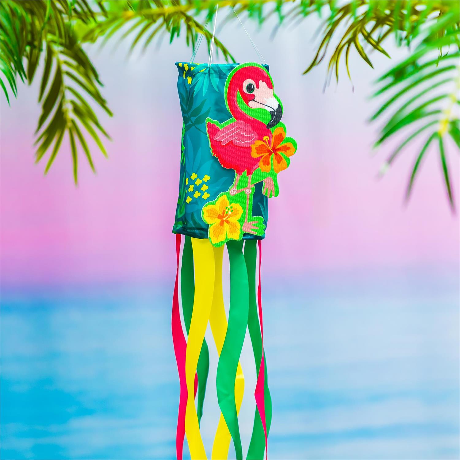 The darling design of this windsock will add movement and whimsy to any garden. Colorful tails with hemmed edges dance in the wind, bringing the design to life every time the wind blows. Perfect for summer, it's made with durable materials to ensure it lasts year after year. The artwork is heat sublimated onto weather-resistant nylon fabric with superior quality. A poly-carbonate plastic hoop at the top opening holds the shape of the windsock and its attached bridle string and swivel snap make hanging easy.