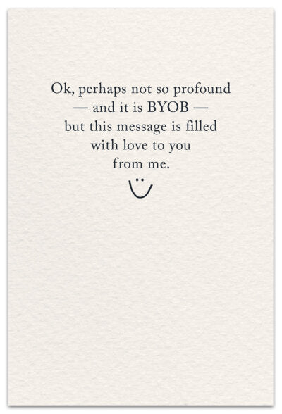 Ok, perhaps not so profound— and it is BYOB —but this message is filledwith love to youfrom me.