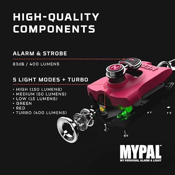 • NEBO MY PAL PERSONAL ALARM & LIGHT | Various light modes can light up any space while the ear-piecing 115db safety alarm and distress strobe provide safety right at your fingertips