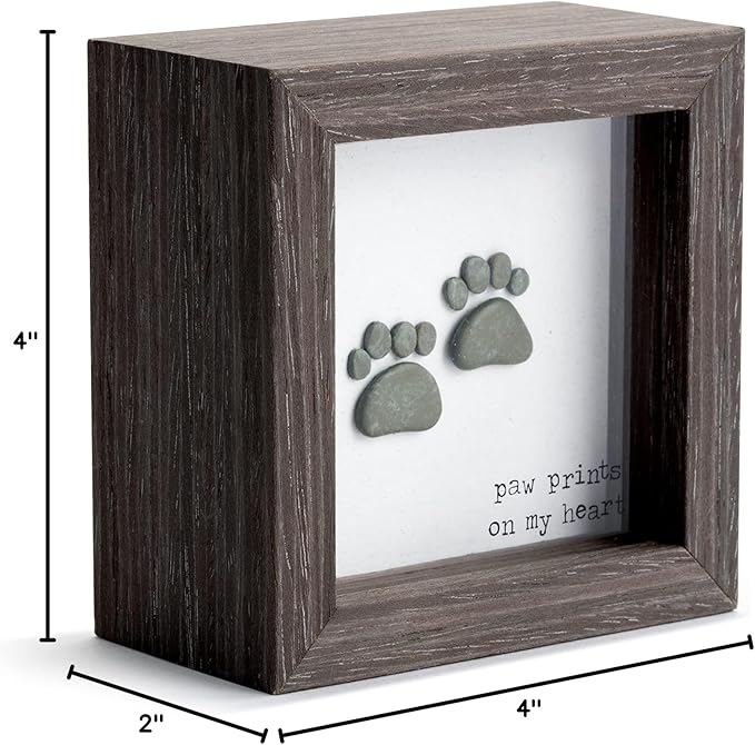 DEMDACO Sharon Nowlan Paw Prints Heart Dark Woodgrain 4 x 4 Wood and Glass Shadow Box