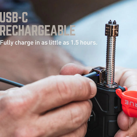 Rugged ABS plastic / Zinc alloy4-electrode cross-arc patternProtective locking coverPower/Charge indicatorRechargeableWind-proof up to 80 MPHWater, dust & impact-resistant (IP56)